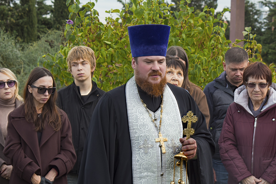 После высадки дерева отец Иоанн, настоятель храма Всех святых, в земле Русской просиявших, вознес литию за упокой душ героев, отдавших свои жизни за любимую Родину.