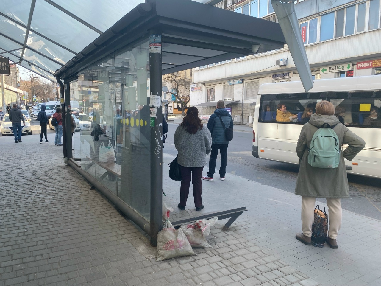Севастопольцы, пользующиеся ежедневно транспортом, вынуждены ожидать автобусы и троллейбусы около этих «роскошных» павильонов, которые не просто перестали защищать от ветра и дождя, но стали представлять собой травмоопасные сооружения.