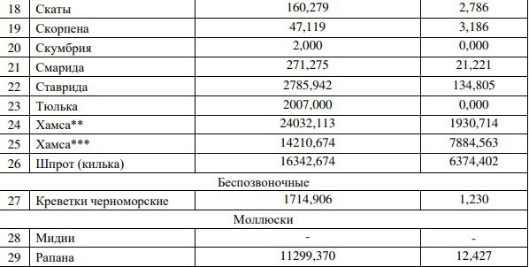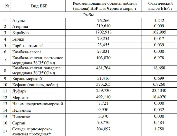 Из 28 видов рекомендованных к добыче существенные объемы промысла показали шпроты, барабуля, хамса, луфарь, смарида. Камбала-глосса, налим средиземноморский, пиленгас, скумбрия не добывались вовсе. Гигантский рыбный потенциал Севастополя остается не раскрыт.