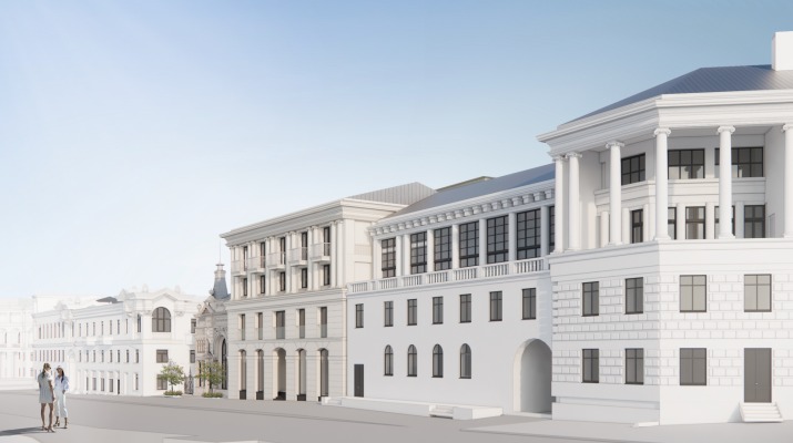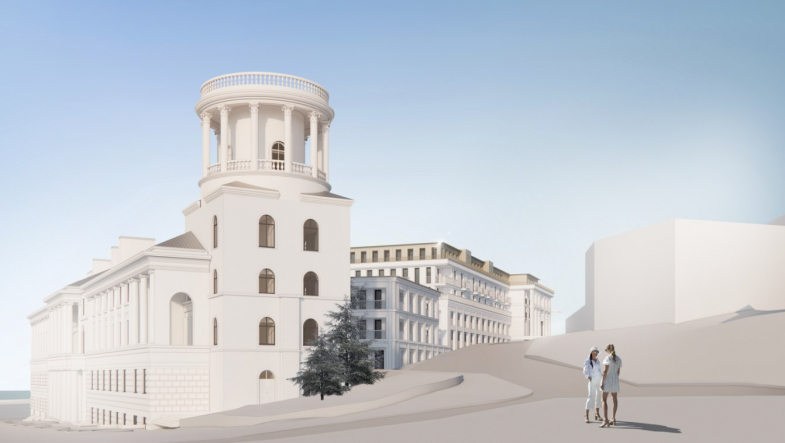Проект также предусматривает перенос и строительство новой трансформаторной подстанции; организацию раздельных потоков гостевого и служебного транспорта; создание удобных пешеходных маршрутов и дополнительных входов в корпуса; размещение подземного паркинга; устройство SPA-комплекса в новом гостиничном корпусе.