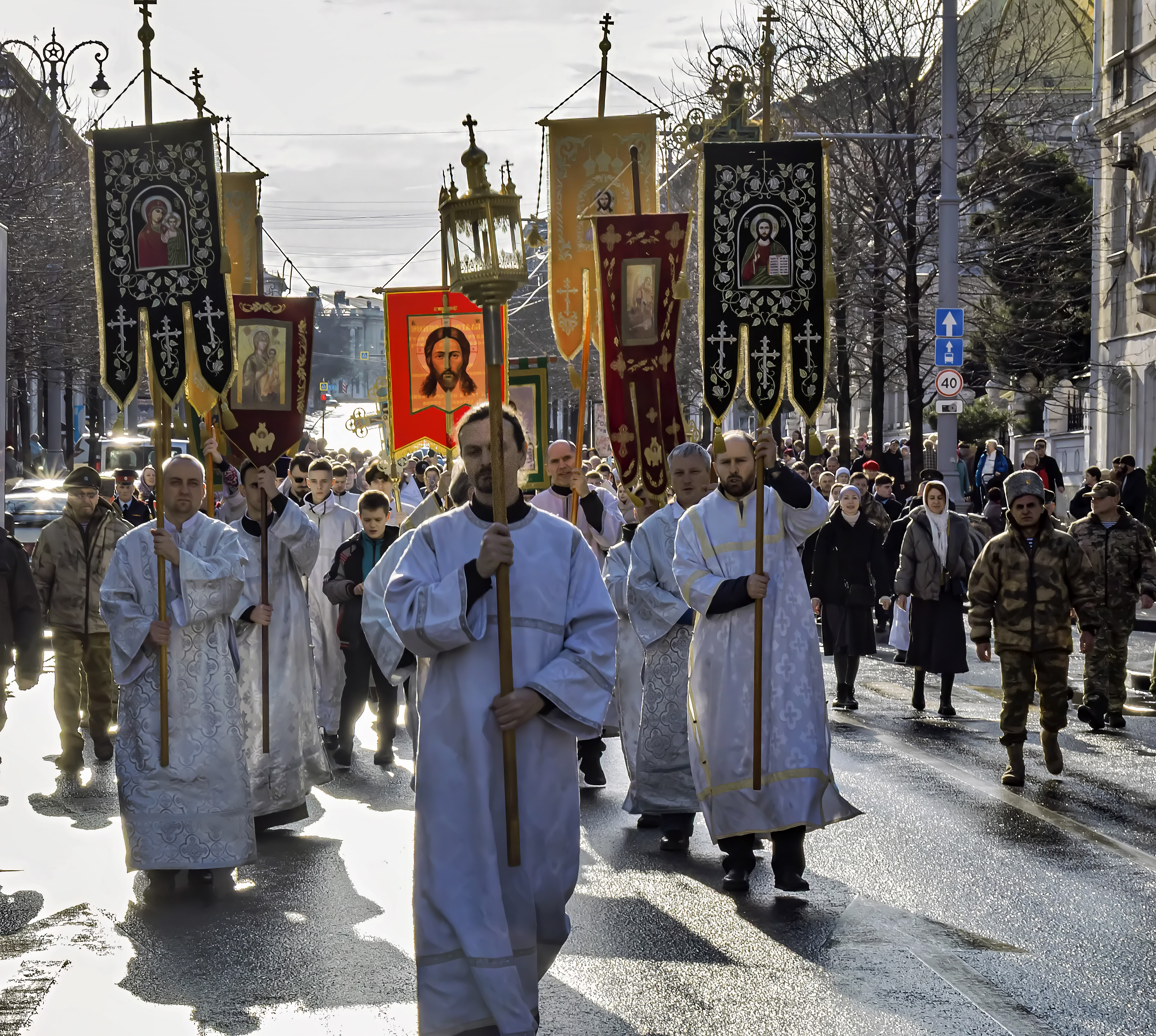 Молитвенное шествие началось у стен Покровского собора на улице Большой Морской и проследовало к площади Нахимова.