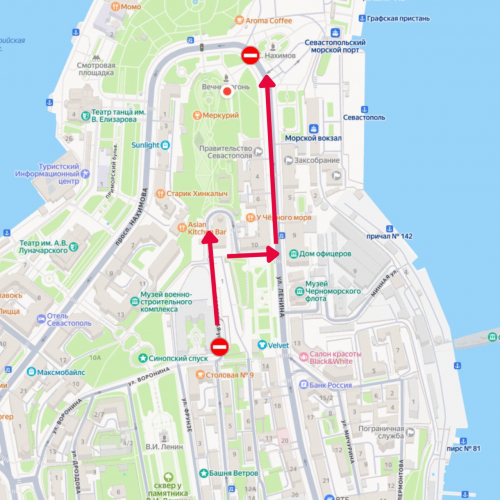 Ограничение движения будет действовать в воскресенье, 16 ноября, с 12:00 до 13:00 на участке от Дома офицеров Черноморского флота до площади Нахимова.
