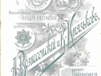 Интересен оборот бланка А. Вознесенского и К. Князькова. Наверху слева над знаком поставщика Императорского Двора надпись: ФОТОГРАФЫ. На знаке инициалы Н II, означающие Николай II, и подпись: Высочайшие награды Государя Императора. Но знак поставщика поставлен незаконно, так как Анисим Вознесенский и Константин Князьков не были придворными фотографами, а только лишь удостоены награды Государя. Это само по себе, конечно, большое достижение, но не дающее право ставить на бланке знак почетного звания. Впрочем, большинство фотографов царской России пренебрегали правилами и помещали такие изображения на своих фирменных бланках.